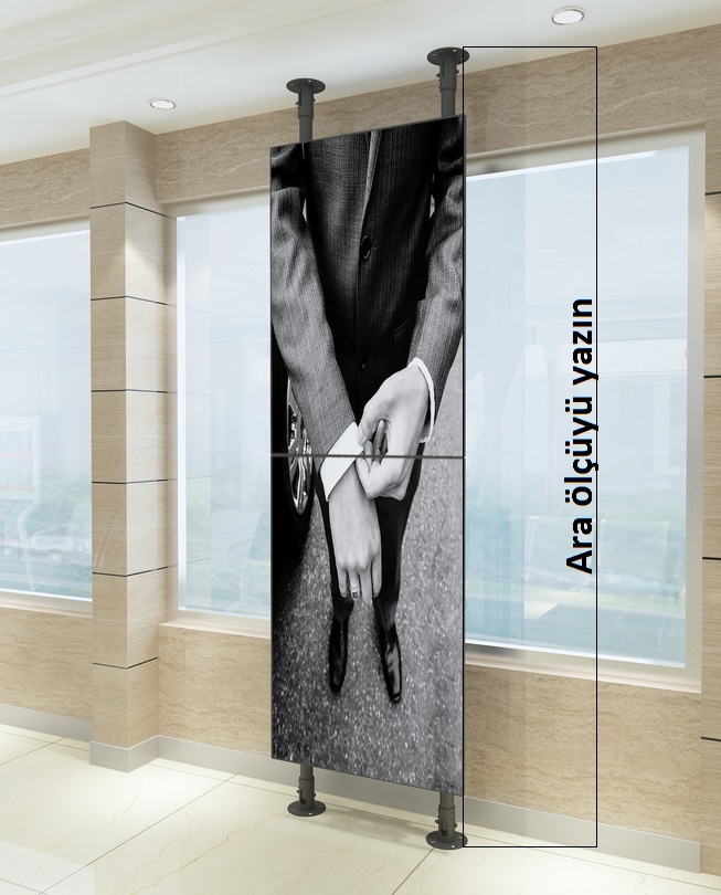 - 55" 60" 65" 75" 85" 105" Yüksek Portre LCD Yerden Zemine 2li Sütun Tavan Askı Aparatı Özel ÜRETİM